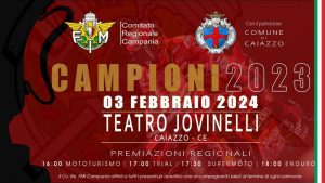 👏 La cerimonia, patrocinata dal Comune e organizzata grazie al supporto del MC Kaiatia, si terrà a Caiazzo (CE) presso il Teatro Jovinelli SABATO 3 FEBBRAIO a partire dalle ore 16 con le premiazioni del Mototurismo, seguiranno alle ore 17 quelle del Trial, alle ore 17:30 Supermoto e alle ore 18 chiuderà l’enduro.